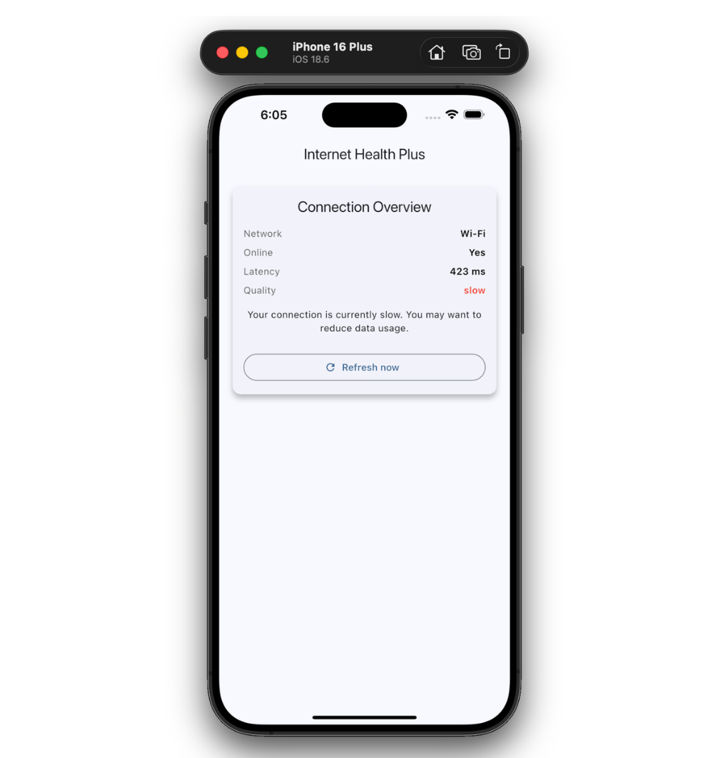 internet_health_plus is a production-ready Flutter plugin designed to provide real internet reachability, latency measurement, and network quality detection — far beyond what connectivity_plus offers.