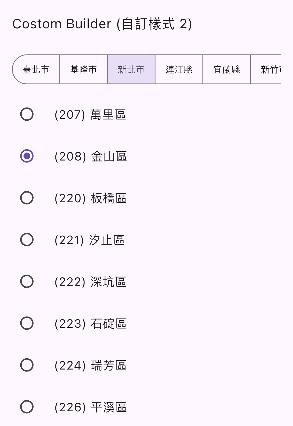 districtBuilder 自訂地區選擇器 UI DistrictBuilder? null