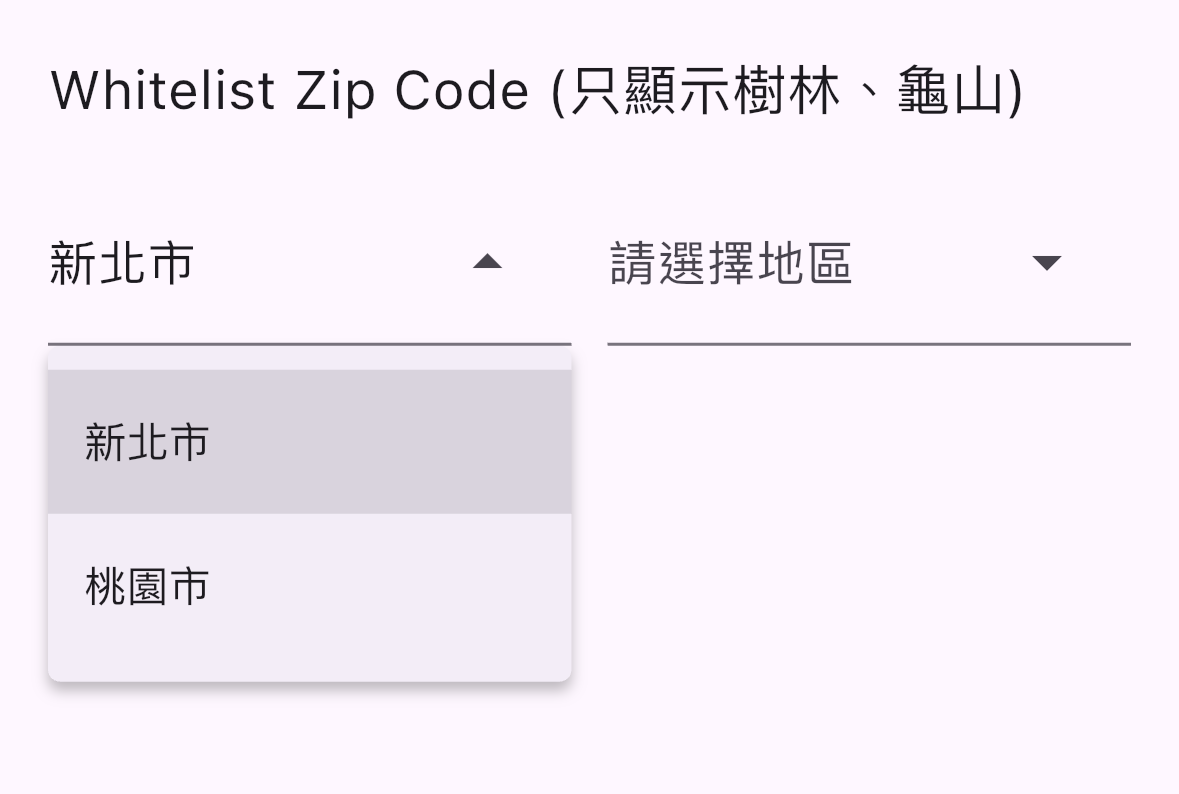 Whitelist Zip Code (只顯示樹林、龜山)