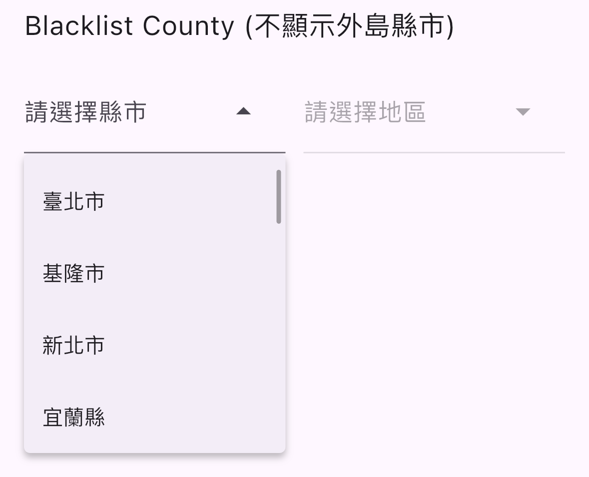 • 縣市區黑名單、白名單控制顯示