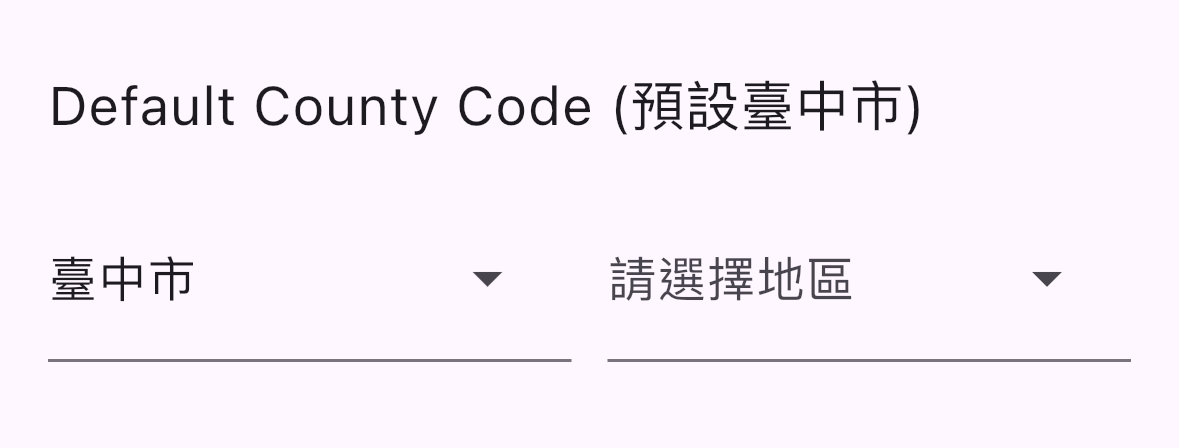 defaultCountyCode 預設選擇的縣市代碼 String? null