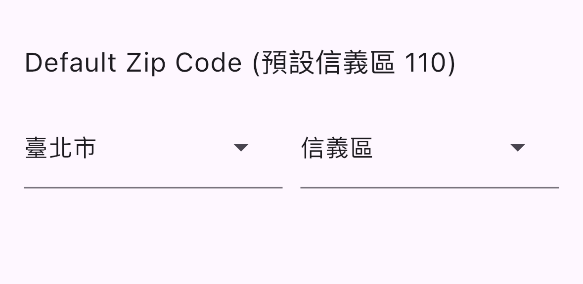 defaultZipCode 預設選擇的郵遞區號 int? null