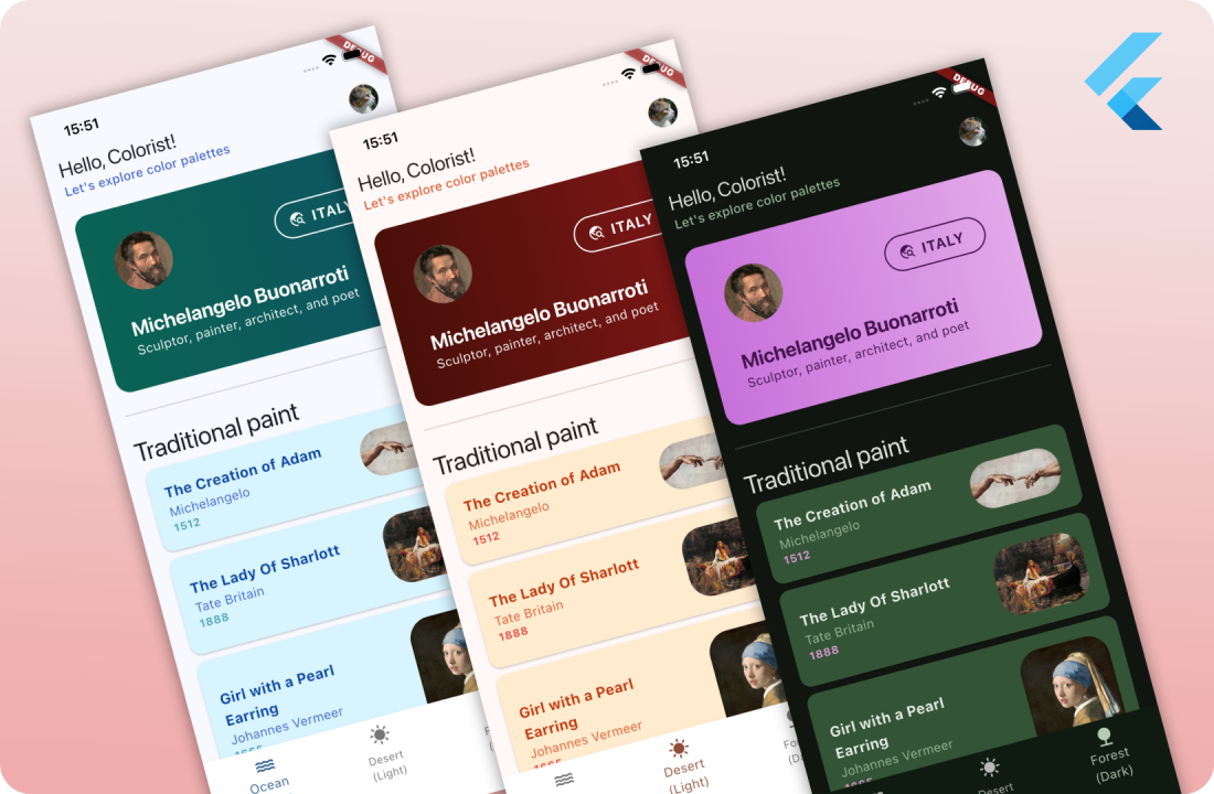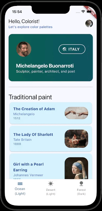 đ¨đ¨âđ¨ Colorist is a simple Flutter package, helping you manage all your custom theming needs from one place. Colorist is most suitable for apps with high level of UI customization, where a range of custom-named colors is required for easy development and design management.