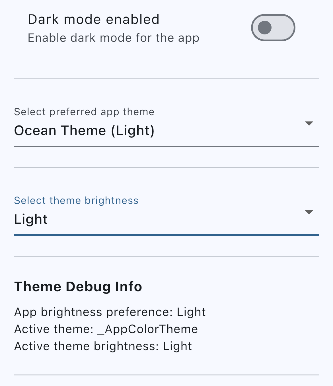 - UI components for changing selected theme and/or brightness