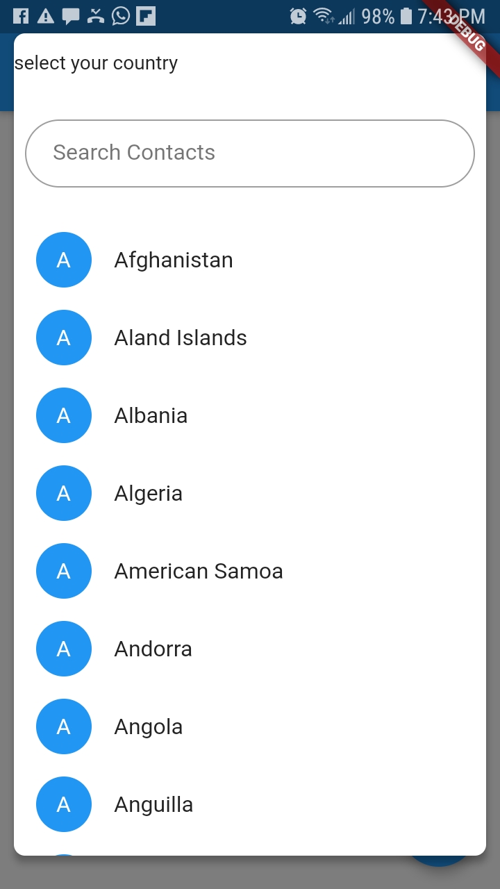 This will display the countries; You can display the country and state either with bottom sheet or dialog #