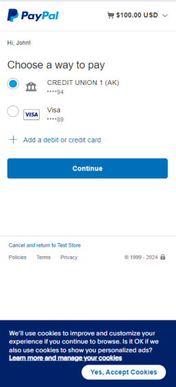 Orders: Navigate to the PayPal checkout view with the desired configuration: