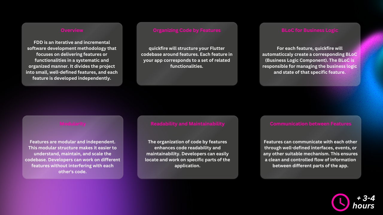 Quickfire is a powerful Dart CLI tool that supercharges your Flutter project setup. With just a few commands, you can create a new Flutter project with all the essential features and configurations, allowing you to focus on building your app.